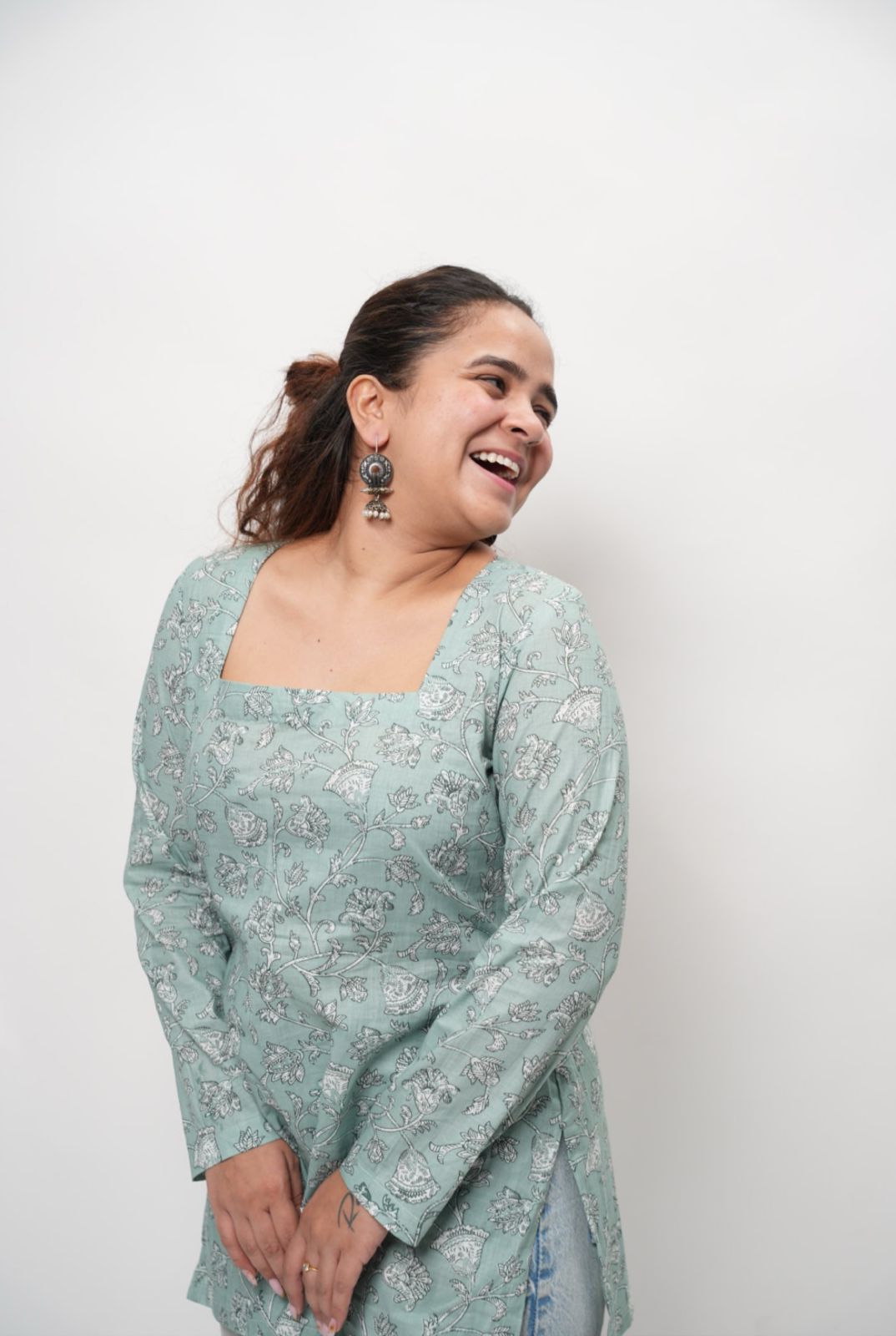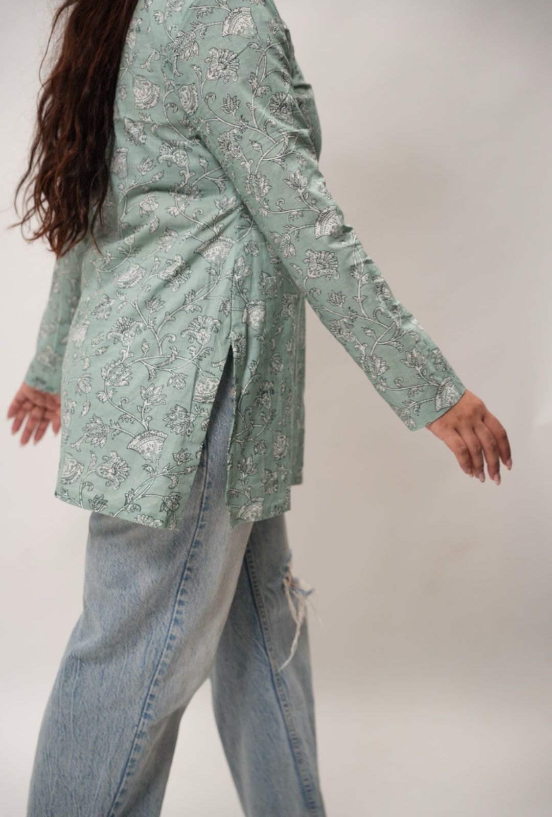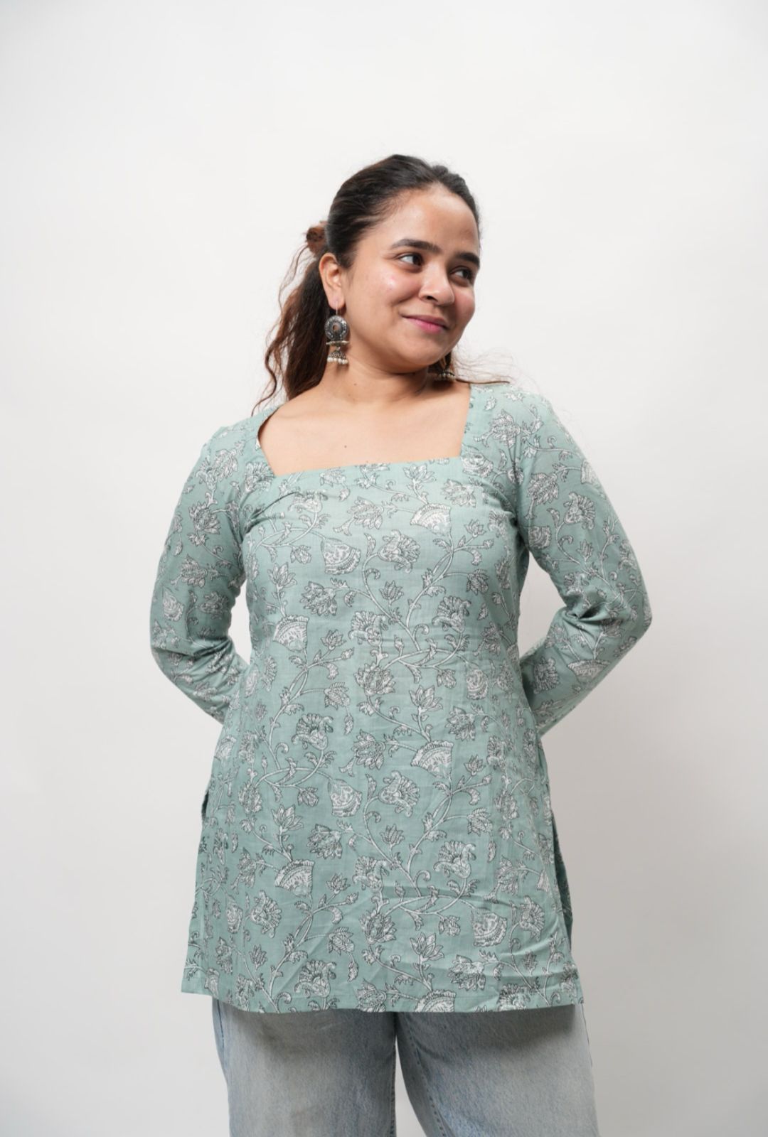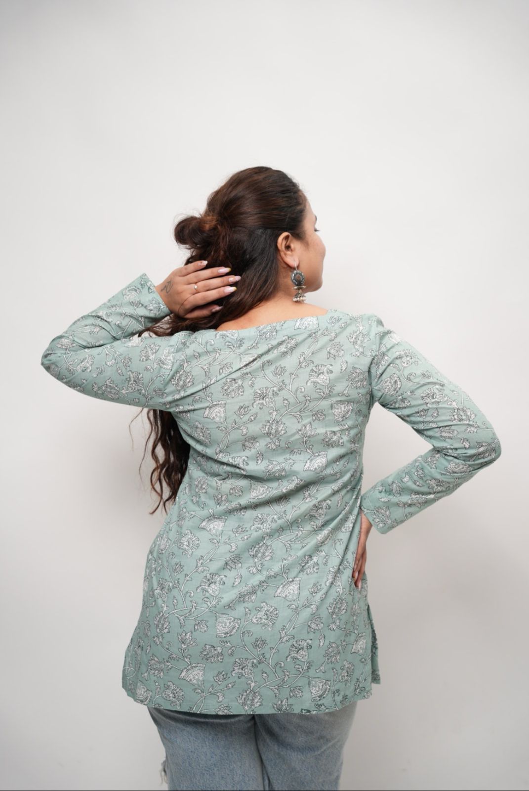 This full sleeves floral short kurti is your go-to for a soft, stylish, and effortlessly pretty look. Light, breezy, and perfect for workdays, brunch dates, or casual hangouts.
