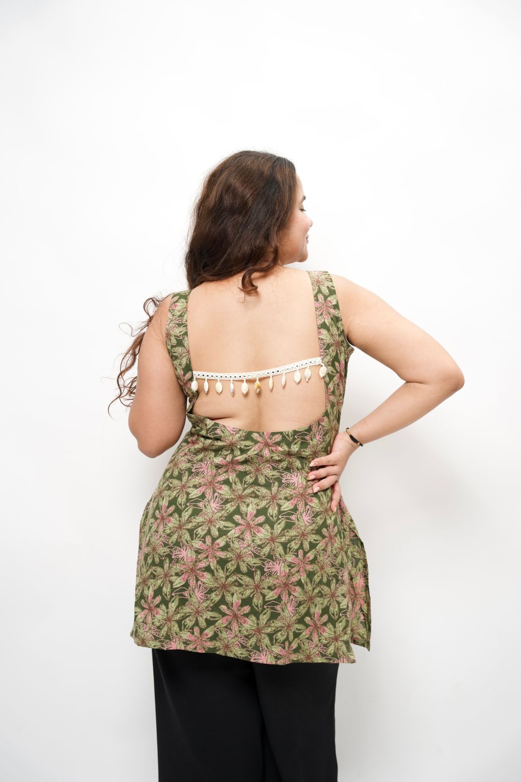 Turn heads effortlessly in this backless designer short kurti, a perfect blend of elegance and bold contemporary style. Crafted from premium quality fabric, this kurti features an alluring open-back design adorned with intricate lacework, adding a touch of feminine charm and sophistication.